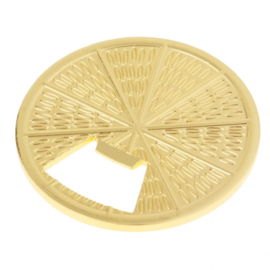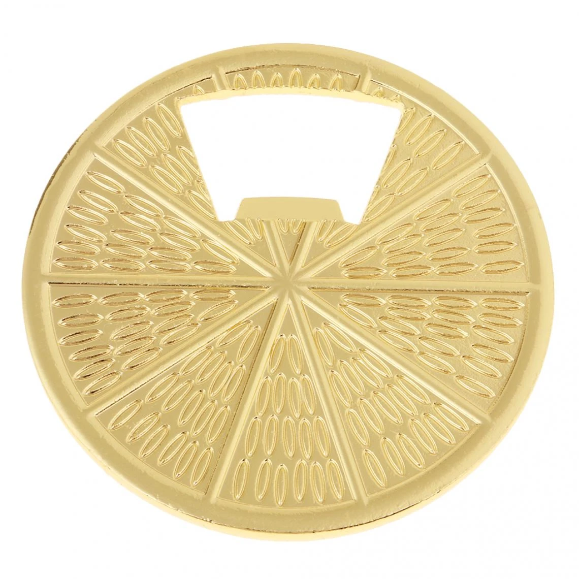 Ouvre-bouteille en or, tranche d’agrumes avec un mécanisme d’ouverture au centre.
