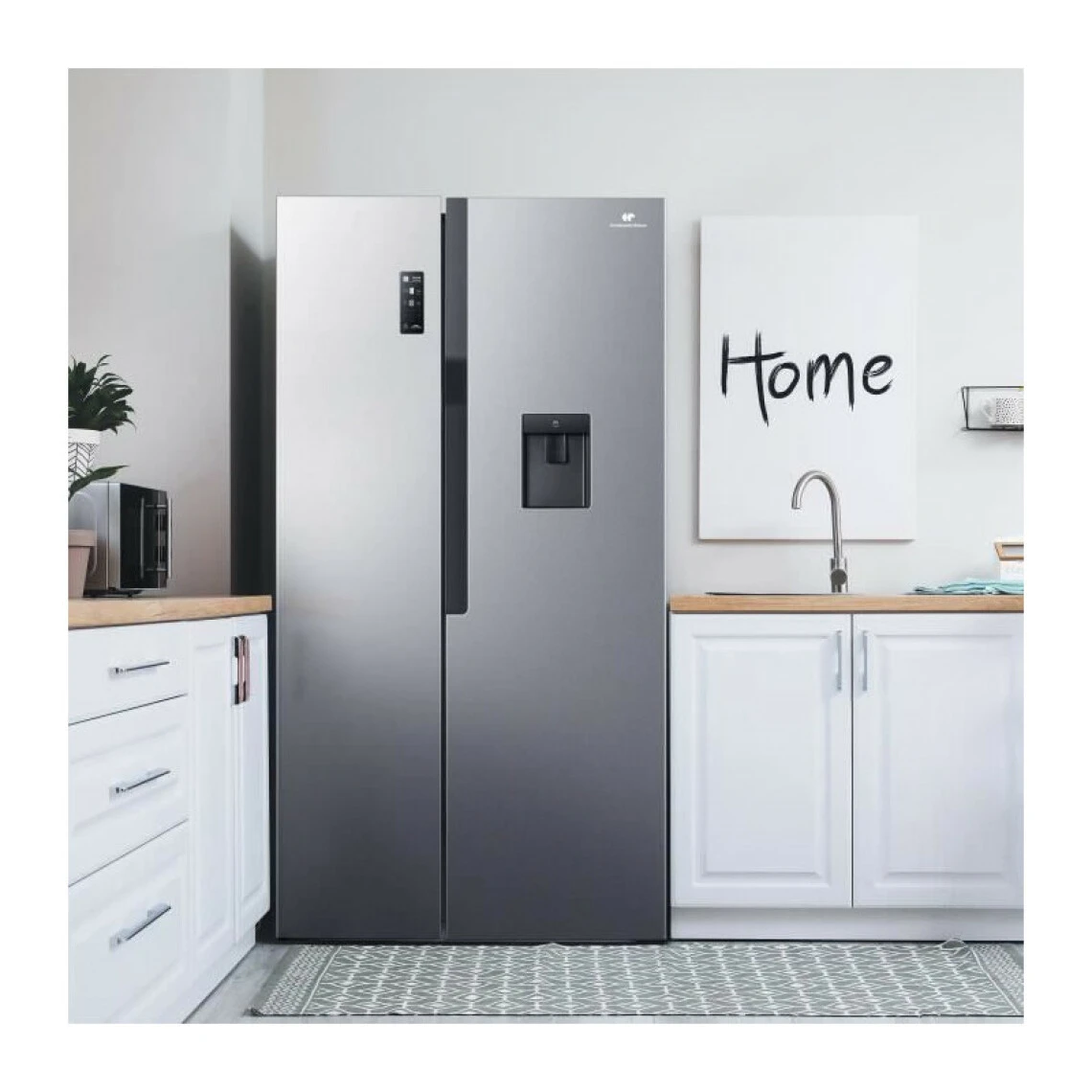 Réfrigérateur américain 519L (334L + 185L) CONTINENTAL EDISON – Total No Frost – Moteur induction – Distributeur d’eau – Poignées intégrées – Inox